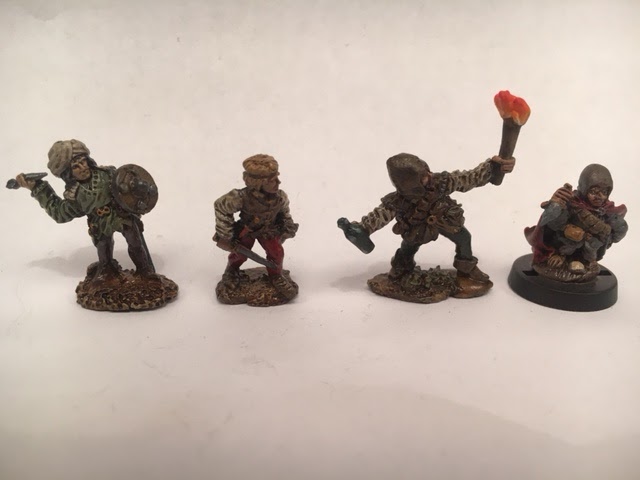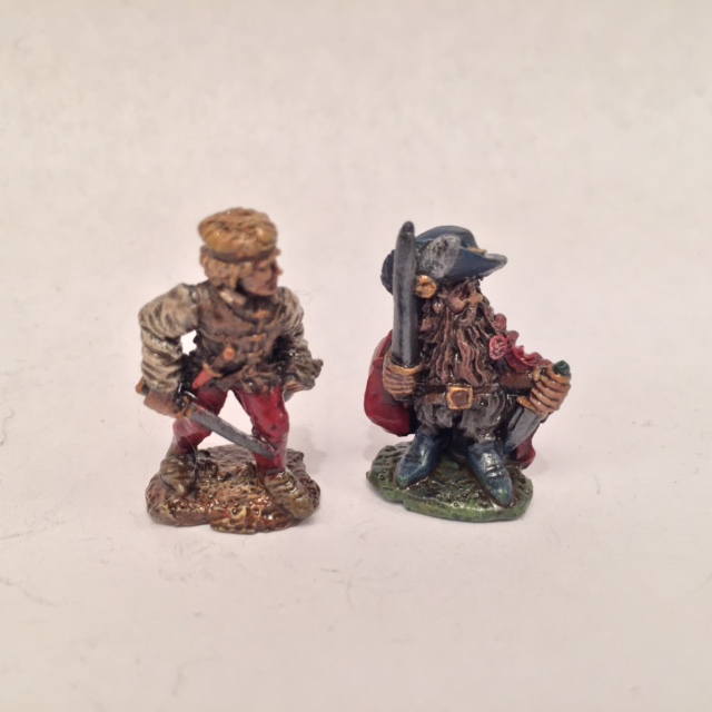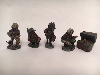 I see the thief on the left as more of a henchman/hireling due to his "common" appearance while the jaunty dwarf thief could serve as a pc or an important npc. About halfway finished with this box.